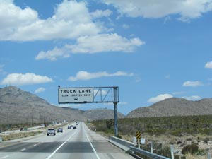 lots of semis, we are soon leaving the somewhat flat desert landscape and entering Arizona and the
